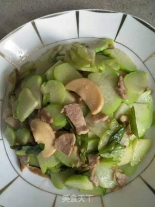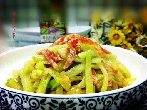3. 翻炒瓜条:将切好的扶手瓜条放入锅中,用中火翻炒至瓜条表面微黄。